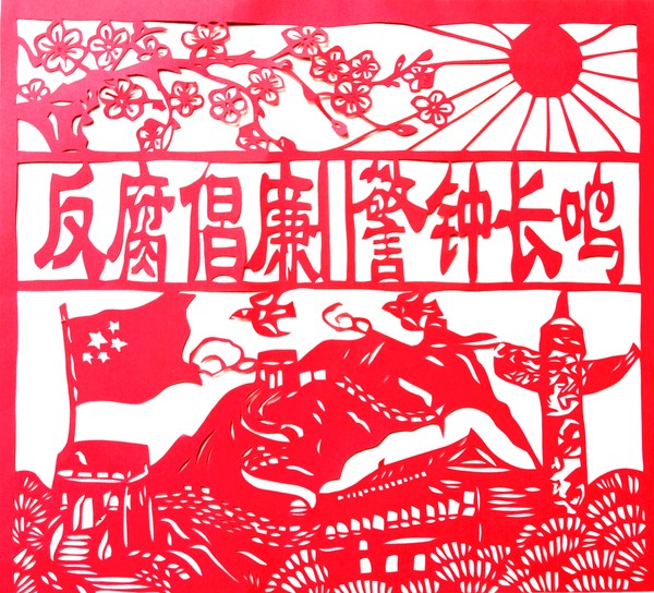 一张张红色的彩纸在一双双巧手下变成了造型各异的“清”、“廉”、“警钟”等精美图案。作品以物喻廉,把廉洁寓于剪纸之中,通过中国传统的民间剪纸艺术弘扬廉洁文化。让我们一起来看看吧!